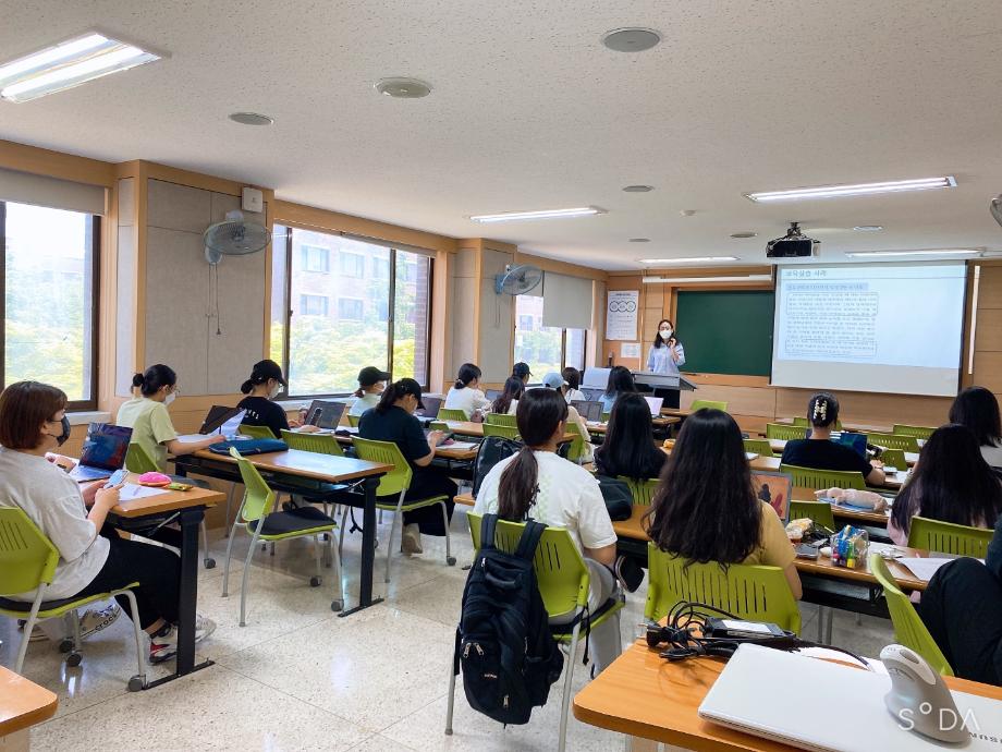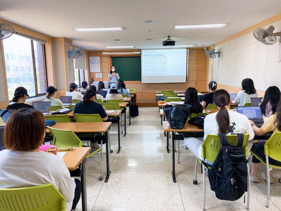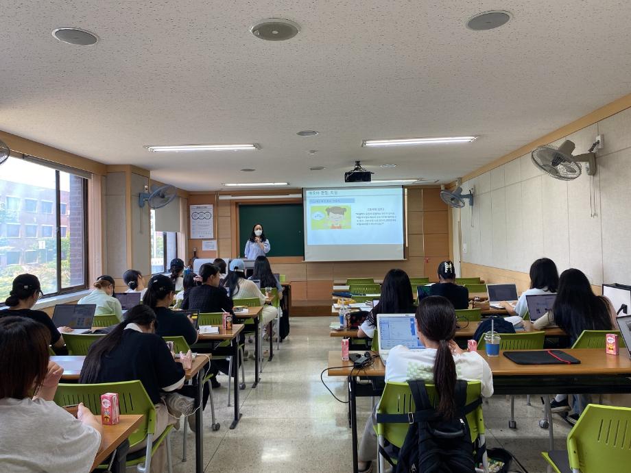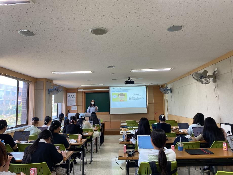 아동교육학과에서는 4학년을 대상으로 원활한 어린이집 보육실습 활동을 위해 필요한 예정과 역할, 각종 서류작성법을 학습할 수 있는 비교과 프로그램으로 <보육실무능력향상 프로그램>을 운영하였습니다. 6.2(금)과 6.9(금) 양일간에 걸쳐 총 15시간 동안 진행된 이번 프로그램에는 어린이집 운영실무에 대한 경험이 많으신 임환미 강사님의 지도하에 4학년 재학생 24명이 참여하여‘보육실습 일지와 놀이지원계획 작성법, 표준교육과정과 누리과정에 근거한 교수학습 실천 및 상호작용, 교재교구, 놀이환경 이해' 등을 학습한 바 있습니다. 이번 프로그램이 6.26(월)부터 6주간 각 지역의 어린이집에서 보육실습을 앞둔 학생들의 실무역량을 강화에 많은 도움이 되었기를 바랍니다.