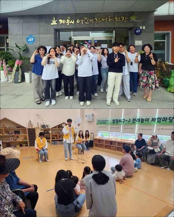 [충남일보 전현민 기자] 충남 건양대학교는 25일 아동교육학과 학생들이 계룡시 어린이감성체험장 가정의 달 행사에 참여해 전통놀이 부스를 운영했다고 28일 밝혔다. 아동교육학과 학생들은 행사에서 1세대와 3세대가 함께하는 전통놀이 부스와 어린이들과 어르신들이 즐거운 놀이 한마당을 즐길 수 있는 활동을 함께 진행했으며 교통정리, 어린이 보호, 어르신 안내, 프로그램 지원 등 다채로운 경험을 함께 했다. 아동교육학과 3학년 대표 홍예준 씨는 “어르신들께서 아이들과 함께 놀이를 즐기는 모습을 보니 세대 통합이 되는 것 같은 기분”이라고 말했다. 출처 : 충남일보(http://www.chungnamilbo.co.kr) |