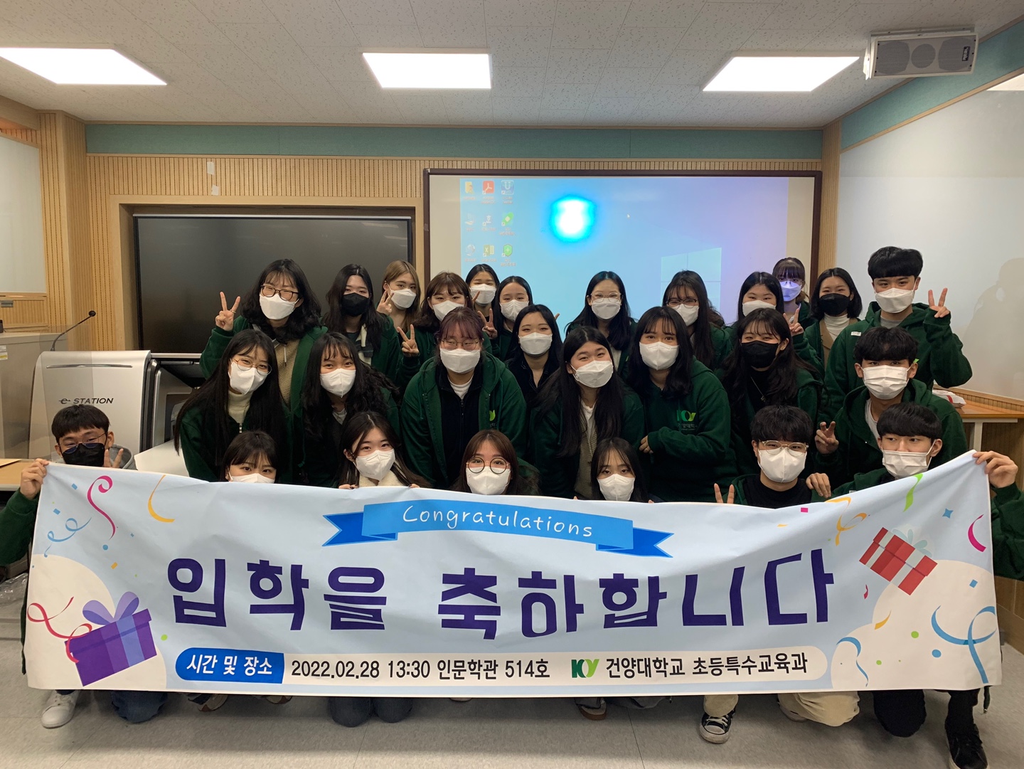 건양대학교 초등특수교육과 22학번의 입학식이 2월 28일에 온라인과 오프라인을 병행하여 진행되었습니다. 코로나19로 전체 행사는 비대면으로, 학과 행사는 대면으로 진행되었는데, 22학번의 첫 출발을 축하는 각종 공연과 행사, 그리고 학과 교수와 재학생과 함께 하는 다양한 프로그램이 마련되었습니다.
