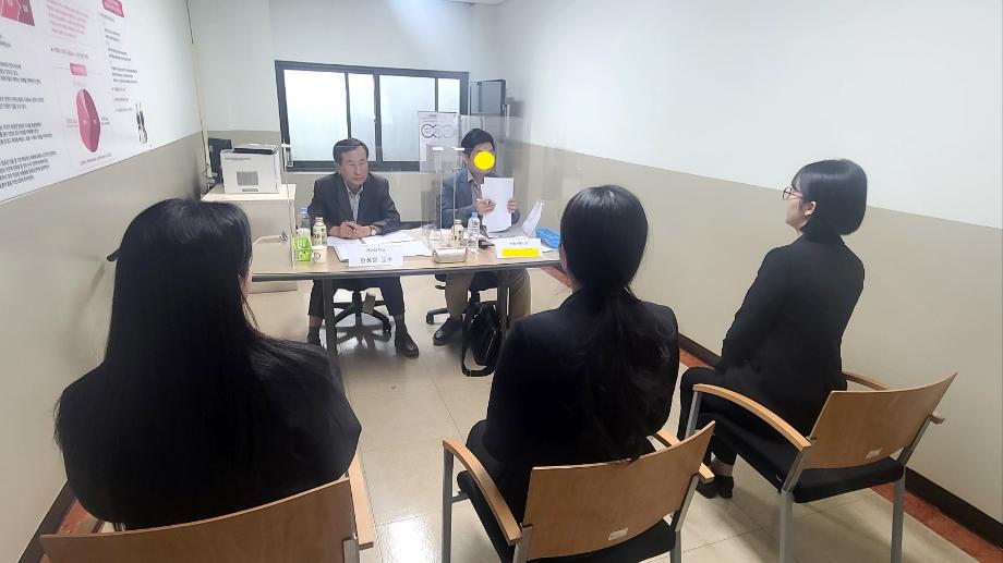 10.6(금), 4학년 대상으로 학과에서 모의면접 프로그램을 진행하였습니다 2개의 면접 분야(병원, 회사) 조로 나누어, 실제 병원경영학과에서 진출할 수 있는 분야의 기관 등에서 외부면접관을 섭외하여 진행하였습니다. 면접 진행 후 피드백 시간을 가져 학생들의 면접역량에 도움이 될 수 있도록 하였습니다.