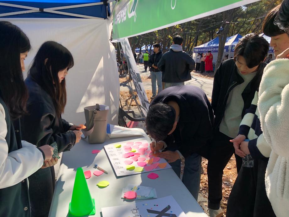 건양대학교 병원경영학과 절주동아리 주(酒)mony가 11월 10일(금요일) 대전 서구청이 주관해 보라매공원에서 개최된 '대전서구대학생행복나눔봉사단과 함께하는 어울림 한마당'에 참여해 건강캠페인을 펼쳤다.
