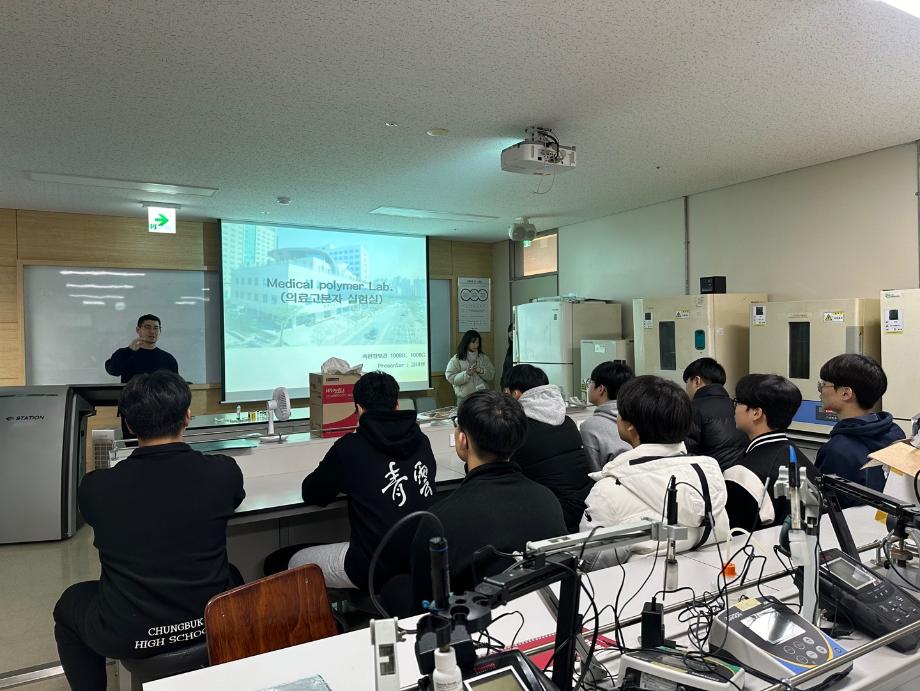 2023학년도 동계 충북고등학교 대학탐방 - 일시 : 2024.02.06(화) 10:00~12:00 - 대상 : 충북고등학교 의료신소재 관심학생 9명