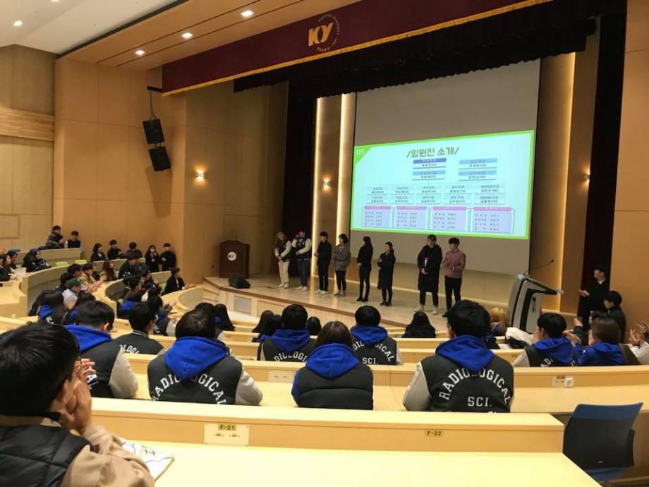 3월 8일. 개강총회, 대면식, 국별 회식이 진행됐습니다. 개강총회의 메인에는 신입생, 복학생, 편입생들의 소개가 있었는데요. 아직은 어색한 분위기 속, 신입생들의 자기소개는 서툴지만 열심히하려는 모습덕분에 선배미소가 절로 지어졌습니다. 개강총회를 마친 학생들은 잠깐의 휴식 이후 대면식 장소로 향했는데요, 대면식에서는 교수님, 직속선후배들의 만남이 이어졌습니다. 회식하면 빠질 수 없는 밥,고기,술 덕분에 어색한 분위기는 금방 사라지고 모두가 어울려지는 모습을 볼 수 있었습니다. 이번 개강총회, 대면식, 국별회식을 통해 더욱 단합하는 방사선학과를 기대하며 다음주 주말에 있는 엠티를 비롯한 다양한 행사들이 활기차고 단합된 행사가 될 수 있도록 노력하겠습니다. 감사합니다 |