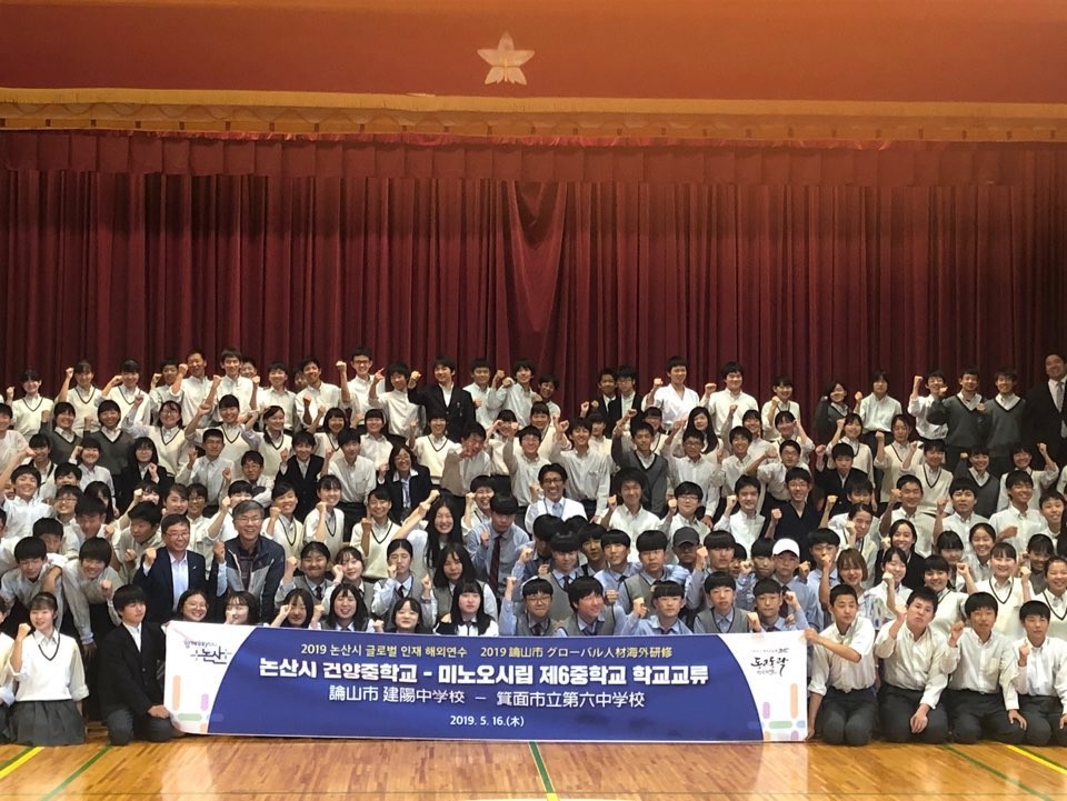 건양중, 일본 오사카 해외연수 NHK 방송 동행 취재 건양대학교 병설 건양중학교(학교장 김관중) 3학년 학생 28명이 논산시 글로벌 인재 해외연수 일환으로 일본 오사카 지역을 14일부터 2박 3일간 백제 역사문화 탐방을 진행하는 가운데 일본 NHK 공영방송국에서 동행 취재하면서 한일간의 민간차원에서의 활발한 교류를 집중적으로 조명했다. 충청남도 논산시청과 교육청의 지원으로 3년 전부터 시작한 이번 글로벌 인재 해외연수는 오사카, 나라, 교토 지역 일원에 있는 백제 역사문화 관련 유적지를 탐방하면서 백제와 일본의 역사관계를 배우고 미래세대의 주역의 될 우리 학생들이 미래 지향적인 관점에서 일본내 백제 유적과 일본 문화재를 살펴보기 위해 기획됐다. 이번 연수에서 학생들은 오사카에 있는 미노오 시립 제6중학교를 방문해 학생들이 평소에 연마한 재능과 장기를 서로 보여 주며 흥겨운 시간을 가졌다. 한일 학생들은 서로 영어로 자신을 소개하는 시간을 갖고, 종이학 접기 놀이를 통해 서로의 우정을 쌓는 시간을 보냈다. 이번 활동을 통해 두 나라 학생들이 친교를 맺고, 상대방 문화를 알고자하는 욕구가 생기고, 특히 장래 양국의 훌륭한 인재로 자라 한일 관계가 더욱 돈독해지는 밑거름이 되기를 소망하는 소중한 행사가 되었다. 이번 해외연수가 더욱 특별했던 점은 일본의 NHK 공영방송국에서 2박 3일 동안 밀착 동행 취재를 하면서 다수의 학생들과 인터뷰를 통해 한일간의 어려운 시기에 일본을 방문한 학생들이 느낀 소감을 중심으로 한일간의 새로운 관계 정립이라는 관점에 초점을 맞춰 방송됐다는 점이다. 특히 방송에서는 오사카 히라가타시에 있는 왕인박사묘를 방문하였던 점을 부각시키면서 왕인박사가 백제로부터 일본에 한자와 유교를 전했다고 하여 학생들이 일본과 한국이 옛날부터 교류가 있었다는 것을 배웠다고 보도하였다. 또한 방송에서는 한일 양국의 사이에는 간과할 수 없는 어려운 문제들이 놓여져 있지만 이처럼 젊은 세대가 자연스럽게 서로의 문화를 접하고 함께 친해지는 모습을 보면서 서로의 문화를 아는 것이 한일간 교류의 시작이자 기회가 된다는 것을 더욱 강조했다.