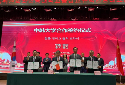 김용하 건양대총장, 중국 교육부 쑨야오 부부장 만나 한·중 대학 교류 활성화 논의 충칭시 소재 3개 대학과 MOU 체결 지난주 중국을 방문한 건양대학교 김용하 총장이 중국교육부 쑨야오(孙尧) 부부장(副部长, 차관급)을 만나 한국과 중국 대학 상호 교류 활성화를 위한 방안에 대해 논의했다고 건양대가 27일 밝혔다. 지난 21일 이루어진 이 만남에서 쑨야오 부부장은 “그동안의 한중 교류는 동북, 화북 지방에 집중이 됐지만 앞으로는 서부쪽 교류가 활성화되어야 한다”며 “중국정부가 추진하고 있는 중국 서부대개발에서 충칭은 핵심 거점이며, 중국 충칭시의 교육발전을 위해 한국과의 교류가 활성화될 수 있도록 적극 도울 예정”이라고 밝혔다. 김 총장은 “한중교류 30년을 맞아 양국간 많은 성과가 있었고 오늘 쑨야오 부부장의 양국 대학 간의 교류에 대한 지지와 관심에 감사드린다”며 “지난 30년간의 한·중교류도 중요하지만 앞으로의 30년이 훨씬 더 중요한 만큼 코로나19로 침체됐던 한국과 중국 대학 간 교류가 활발하게 진행될 수 있도록 최선을 다하겠다. 이를 통해 양국 학생들이 글로벌 마인드를 갖춘 인재로 발전될 수 있도록 적극 지원할 것”이라고 말했다. 김용하 건양대 총장과 소연 건양대 국제교류원 주임교수는 21세기 한·중교류협회(회장 김한규) 주최로 지난 17일부터 22일까지 세한대, 명지대, 경동대와 함께 중국을 방문한 바 있으며 충칭시 소재 4년제인 장강사범대학교와 전문대학교인 충칭유아사범고등전문학교, 충칭도시관리직업학원과 MOU를 체결하고 향후 다양한 인적교류 및 학술 연구를 추진하기로 했다. 이번 협약을 통해 건양대와 장강사범대학교는 2+2, 3+1 등 교환‧파견프로그램, 공동학위프로그램, 학술교류 등을 추진하기로 했고 충칭유아사범고등전문학교와는 아동교육전공 중외합작프로그램 협력, 충칭도시관리직업학원과는 중외합작프로그램, 교환‧파견프로그램 등을 추진하기로 했다. 한‧중교류 활성화를 위해 결성된 21세기 한‧중교류협회는 김한규 前 총무처 장관이 회장을 맡고 있으며 이번 한‧중 수교 30주년을 맞이해 한중대학 총장교류회를 진행했다. [사진설명] 사진 1. 지난 21일 한중간 대학교류 논의를 위해 만난 건양대 김용하 총장(왼쪽), 중국교육부 쓘야오 부부장 사진 2. 건양대가 충칭 소재 3개 대학과 맺은 MOU 체결 장면. 앞줄 왼쪽부터 장강사범대학교 부총장 향소천(向小川), 건양대학교 총장 김용하, 충칭도시관리직업대학교 당위서기 추효파(邹晓波), 충칭유아사범고등전문학교 부총장 양춘화(杨春和) 순 |
