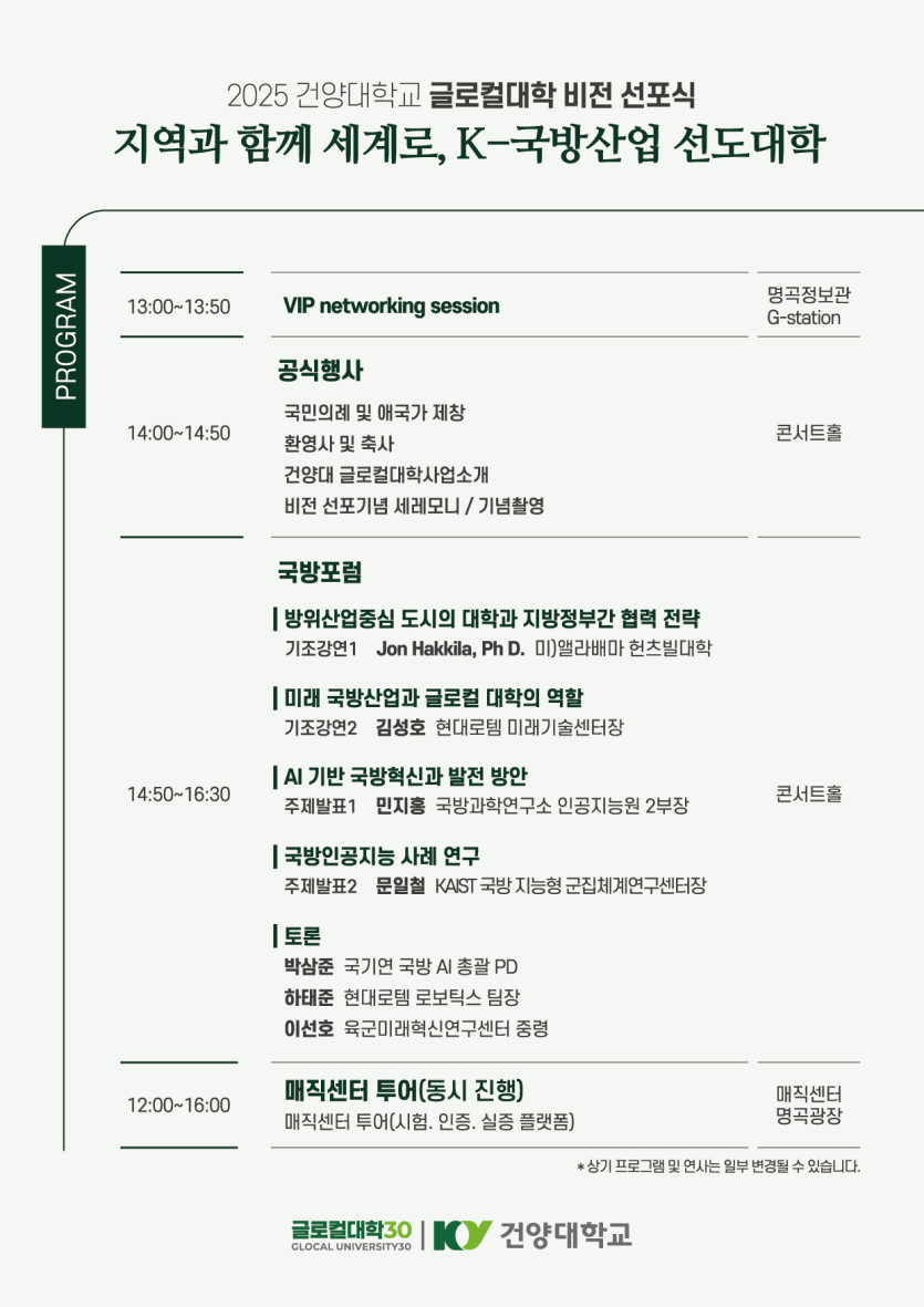 | 제목 | 건양대학교 글로컬대학 비전 선포식 행사(프로그램) 안내 | ||||