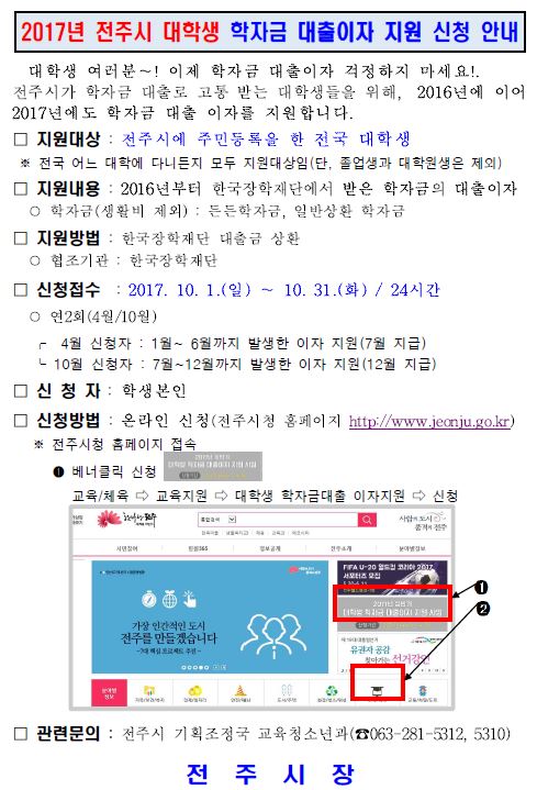 | 제목 | 2017학년도 전주시 대학생 학자금 대출이자 지원 신청안내 | ||||