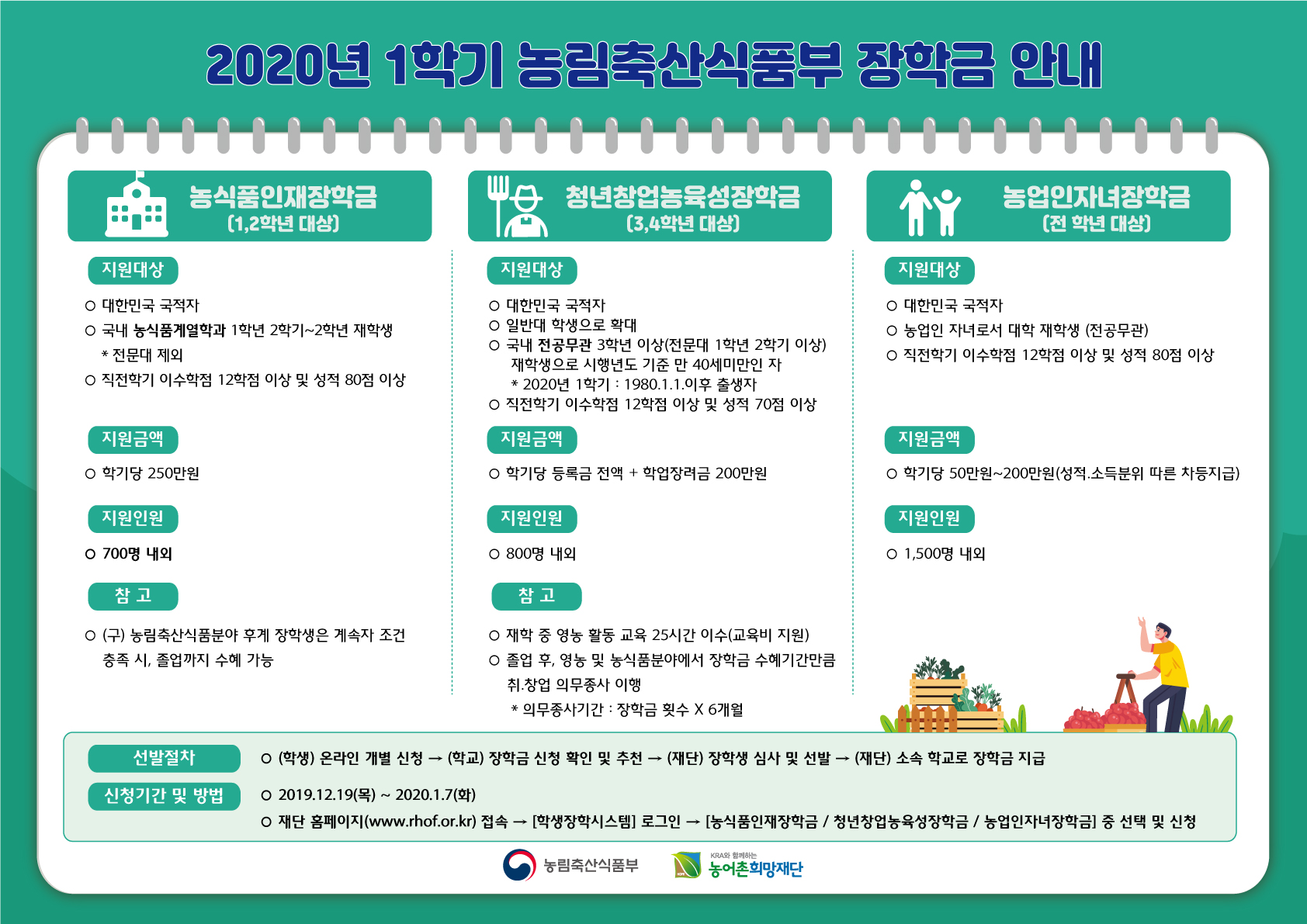 | 제목 | 2020학년도 1학기 농어촌희망재단 장학생 신청 안내 | ||||