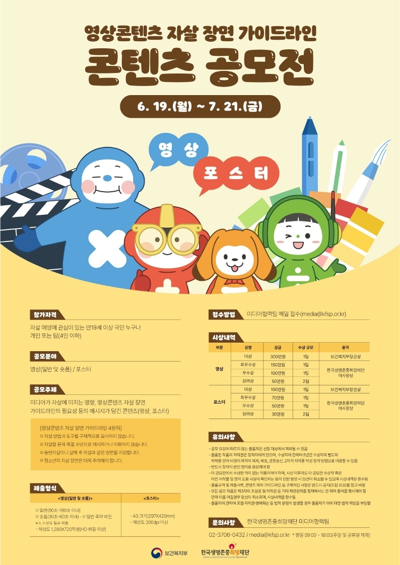 | 제목 | 영상콘텐츠 자살 장면 가이드라인 콘텐츠(영상, 포스터) 공모전 안내 | ||||