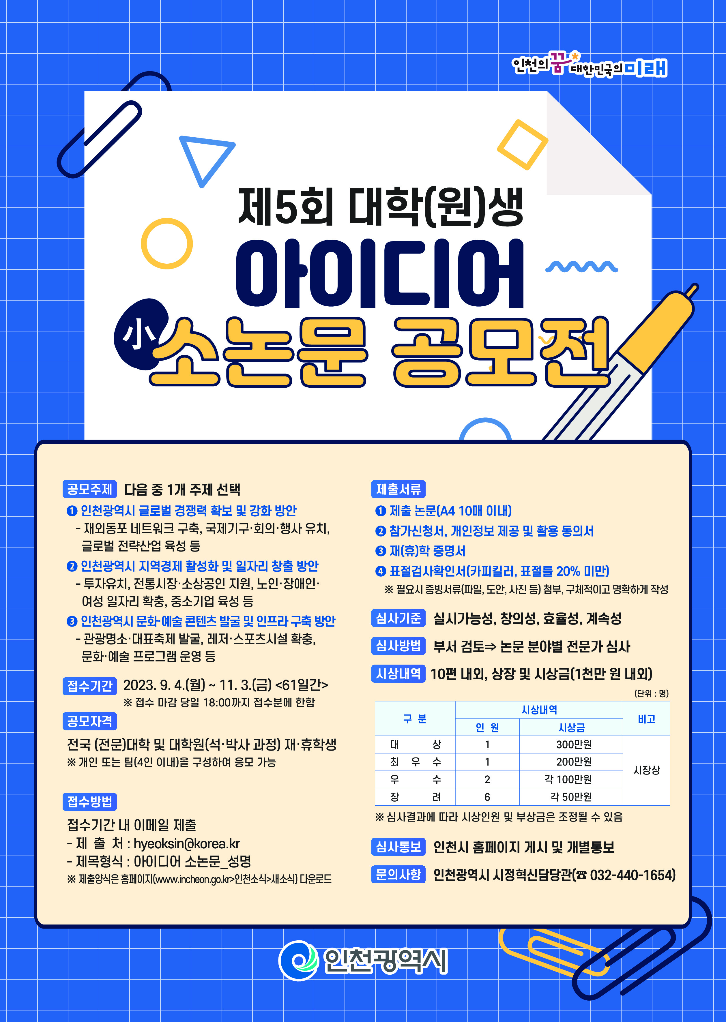 | 제목 | 제5회「대학(원)생 아이디어 소(小)논문 공모전」 안내 | ||||