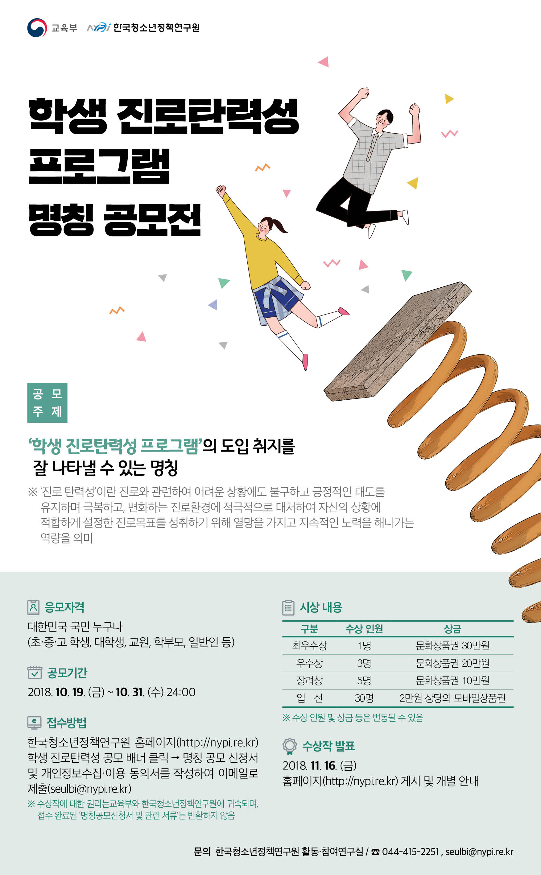 | 제목 | 학생 진로탄력성 프로그램 명칭 공모전 안내 | ||||