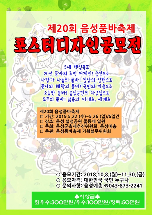 | 제목 | 제20회 음성품바축제 포스터 디자인 공모전 안내 | ||||
