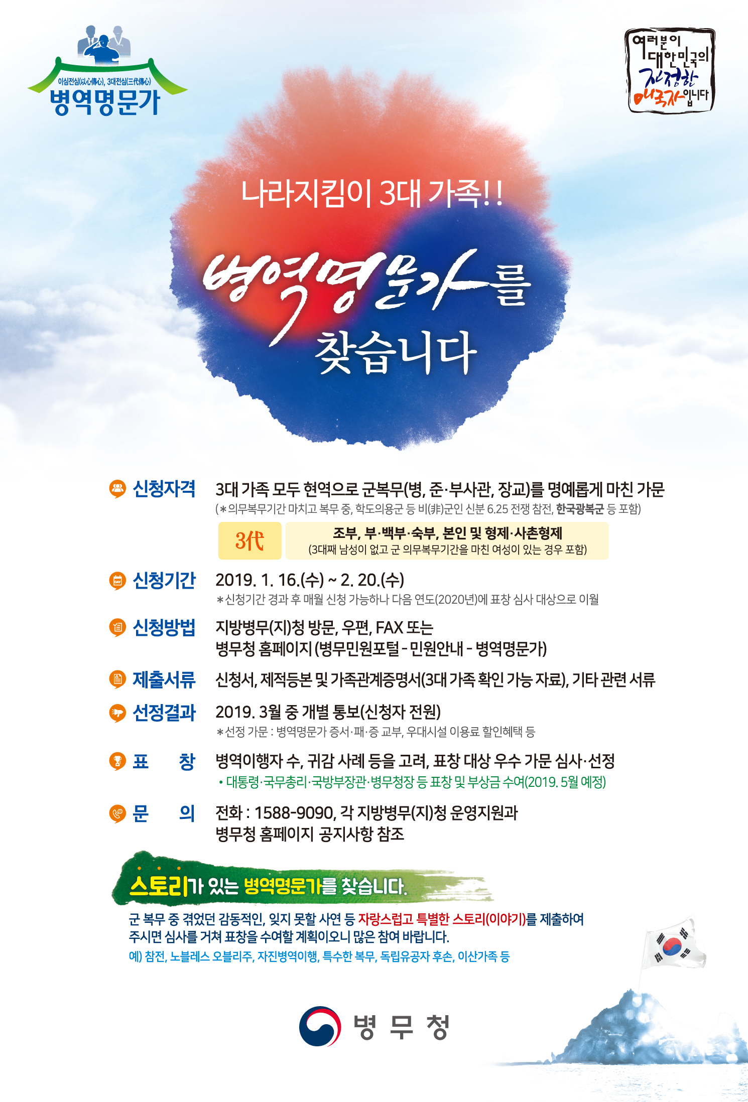 | 제목 | 2019년 병역명문가 선양사업 안내 | ||||