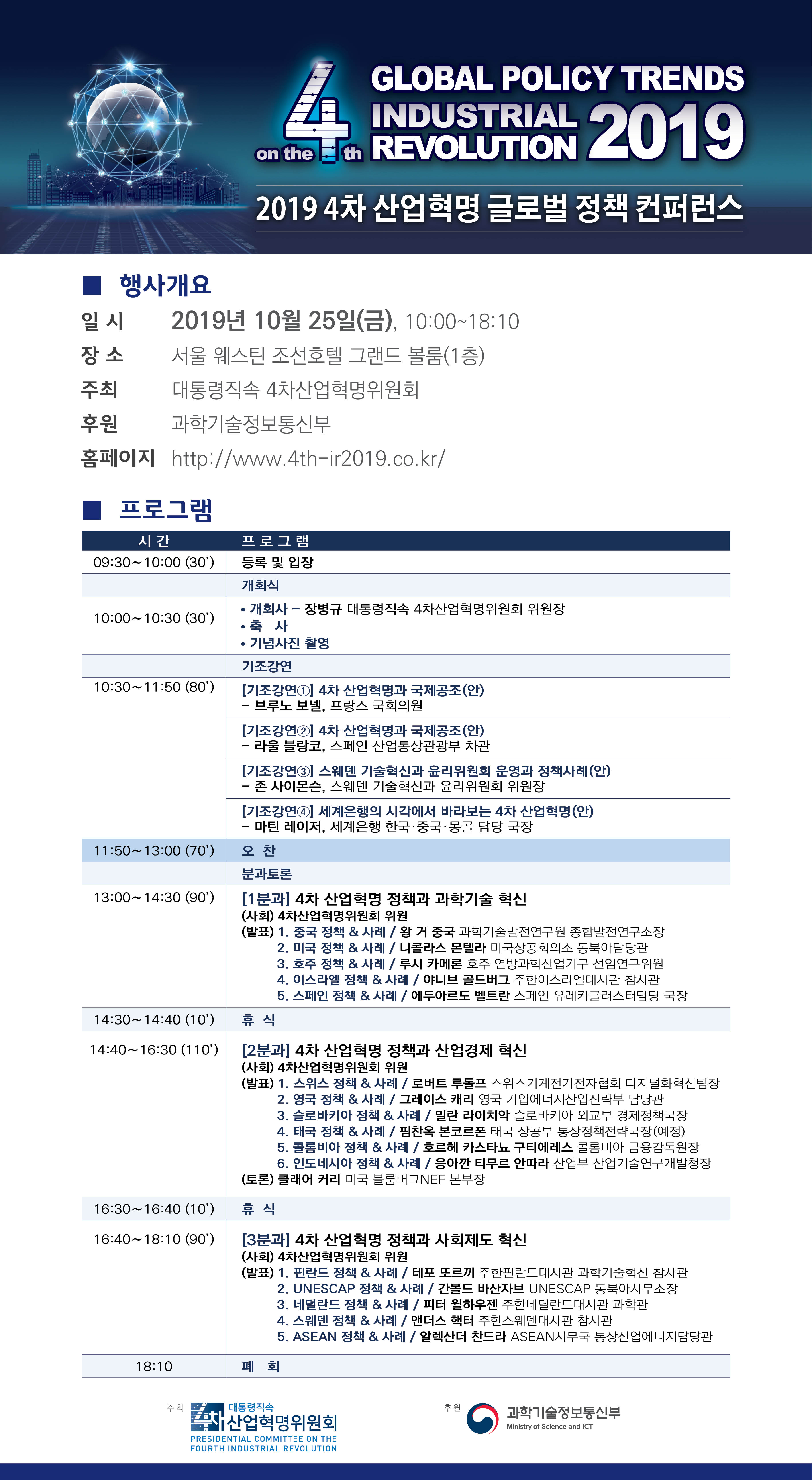 | 제목 | 4차 산업혁명 글로벌 정책 컨퍼런스 안내 | ||||