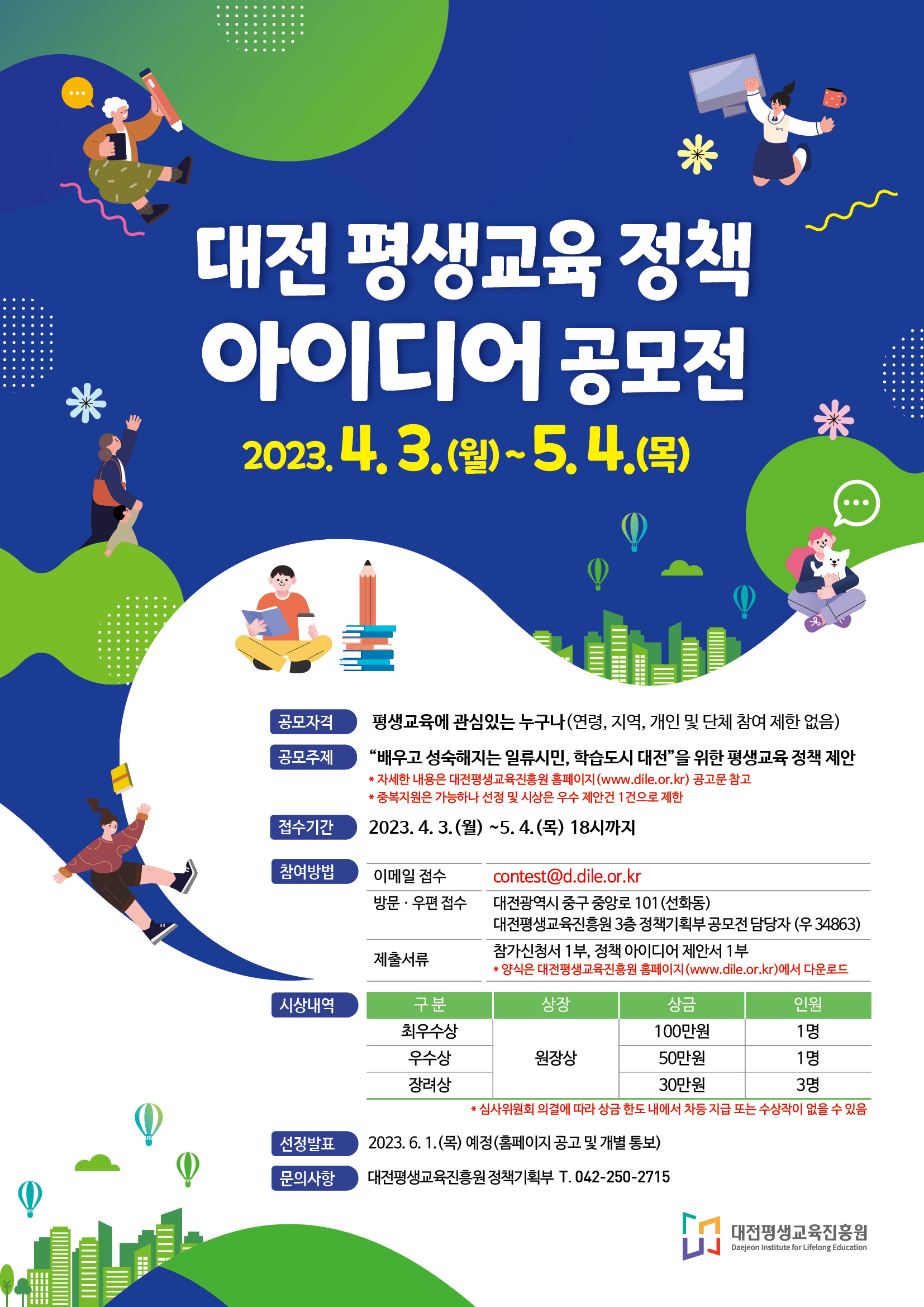 | 제목 | 2023년 대전 평생교육 정책 아이디어 공모전 안내 | ||||