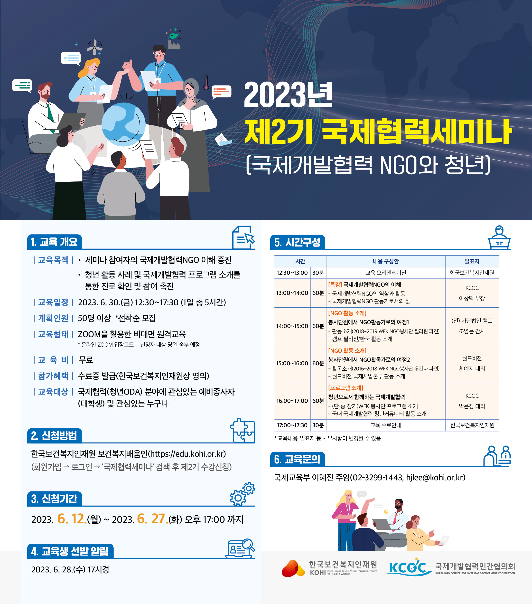 | 제목 | 2023년 제2기 국제협력세미나(국제개발협력 NGO와 청년) 안내 | ||||
