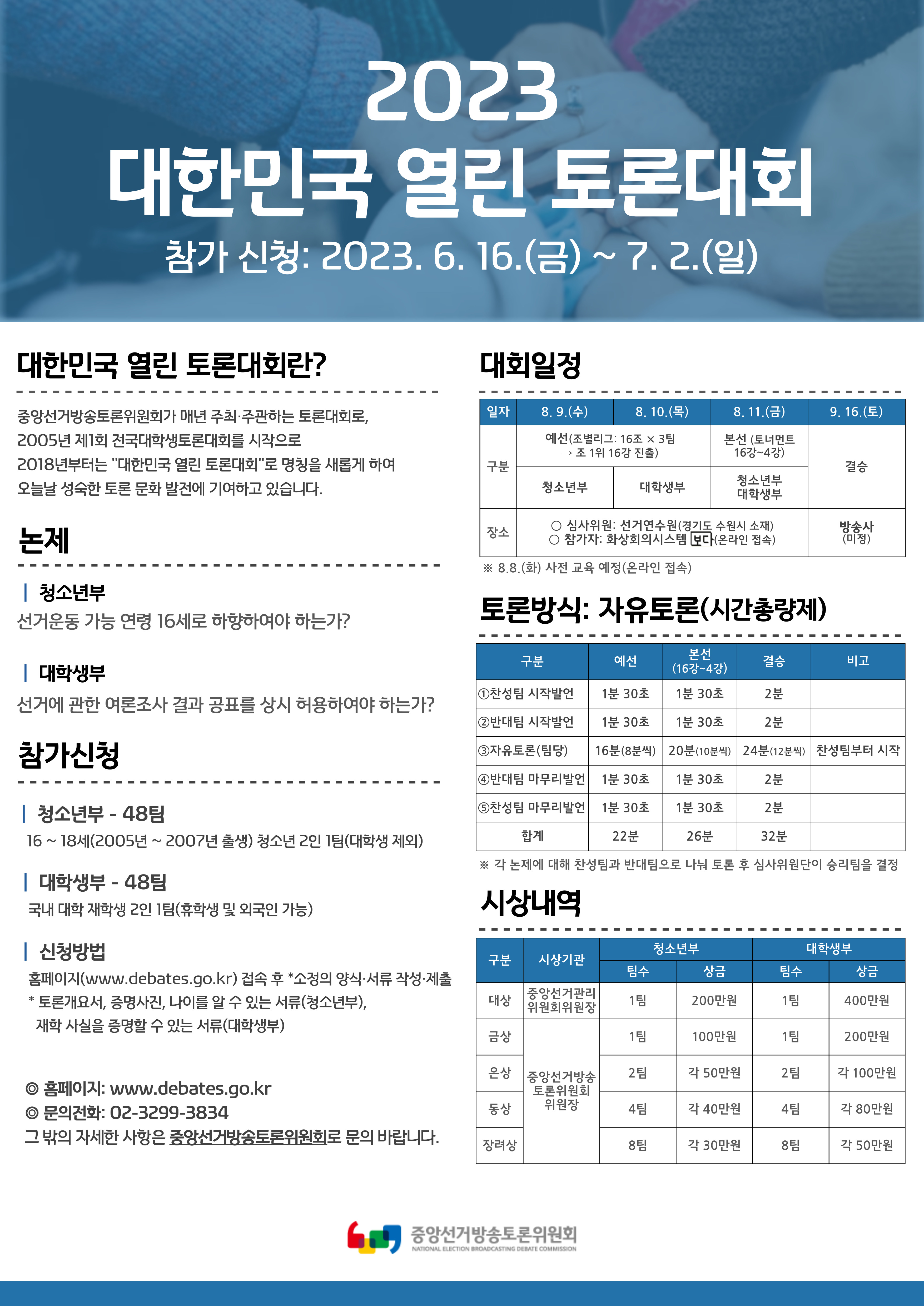 | 제목 | 2023 대한민국 열린 토론대회 안내 | ||||