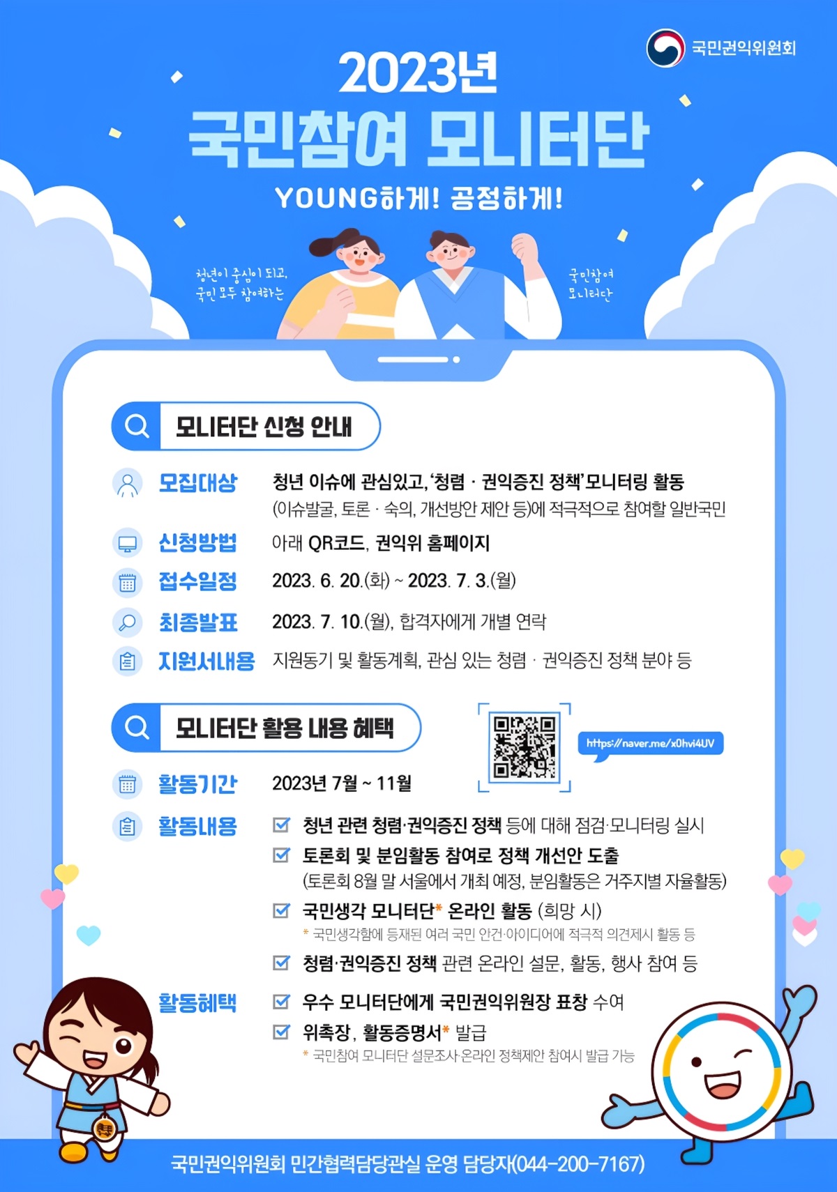 | 제목 | 국민권익위원회 '2023년 국민참여 모니터단' 모집 안내 | ||||