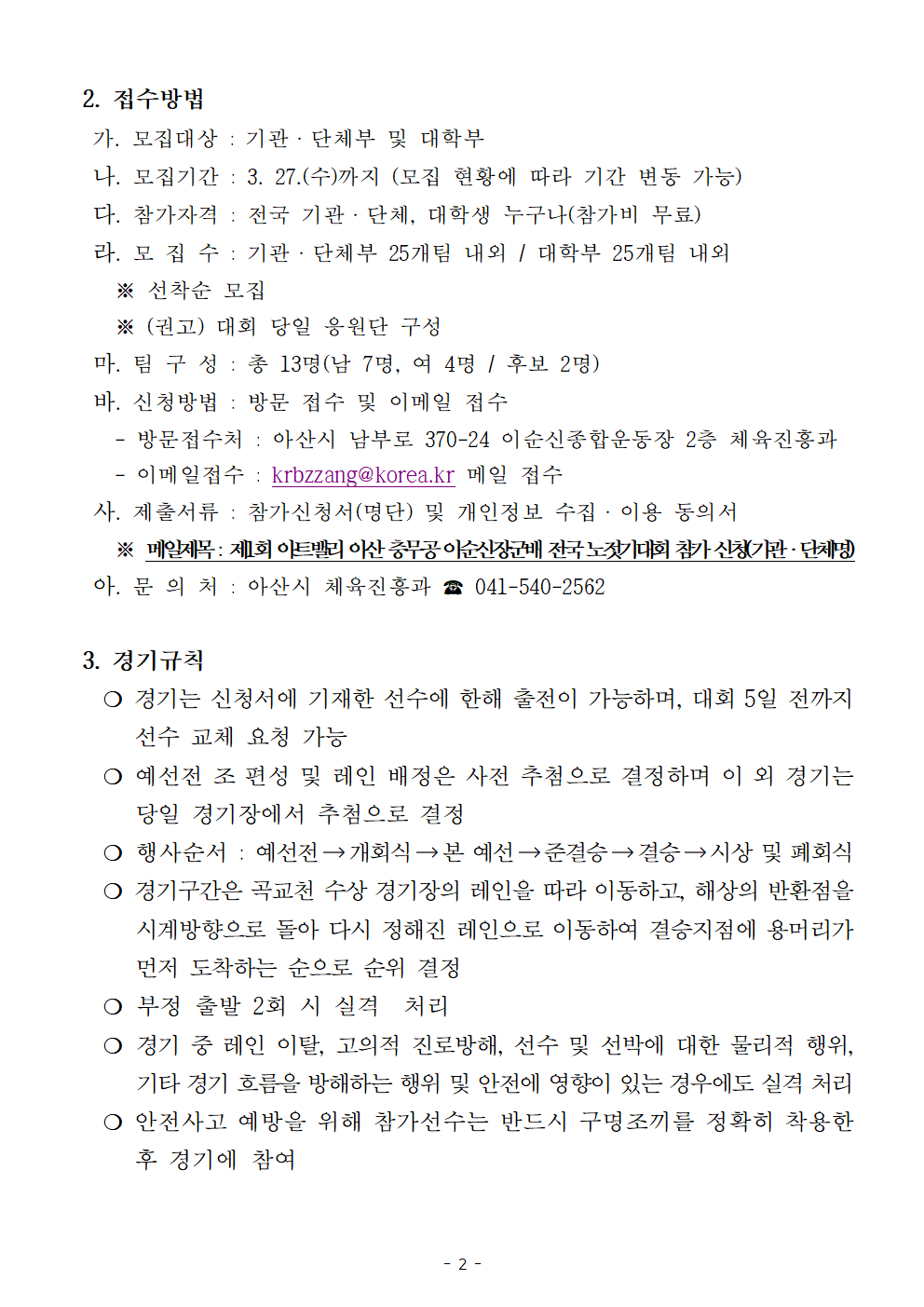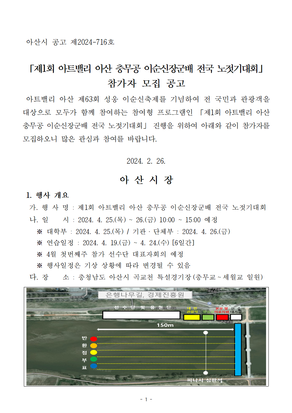 | 제목 | 「제1회 아트밸리 아산 충무공 이순신장군배 전국 노젓기대회」 참가자 모집 공고 | ||||