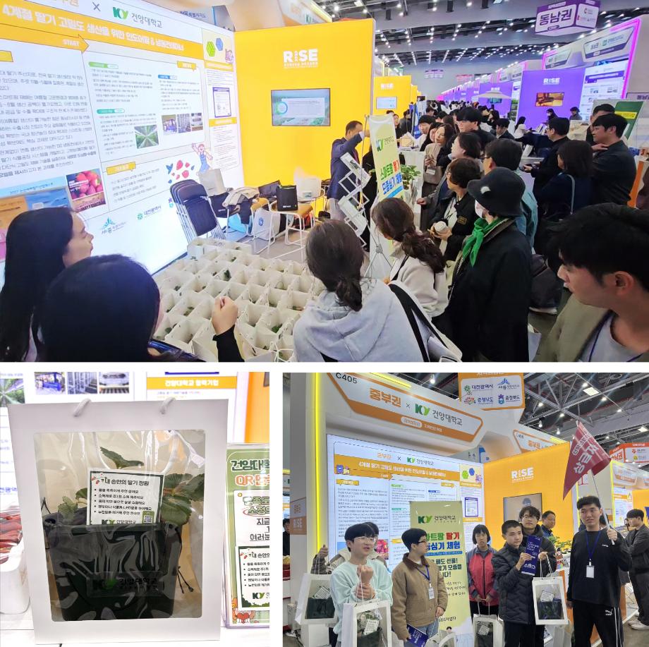 건양대 RISE사업단(단장 홍영기)은 충남RISE사업의 시그니처 과제 가운데 ‘기초지자체-대학 협약기반 자율형 지역현안 해결’ 부문에서 논산시와 긴밀하게 협력하고 있다. 이번 EXPO에서는 이 같은 협력으로 얻어진 ‘4계절 딸기 고밀도 생산을 위한 스마트팜’의 혁신 성과를 선보였다. 이를 통해 산학연 협력의 확장과 유기적인 연계를 도모하고, 상호 협력의 소중한 기회를 마련했다.