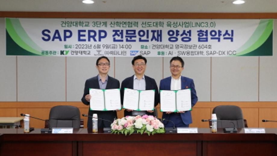 이날 협약을 통해 건양대와 SAP코리아, 섹타나인은 소프트웨어 인력 양성을 위한 교육 프로그램을 함께 개발하고 건양대 기업소프트웨어학부(학부장 이규만) 학생들을 대상으로 실무 교육을 진행하기로 했다.