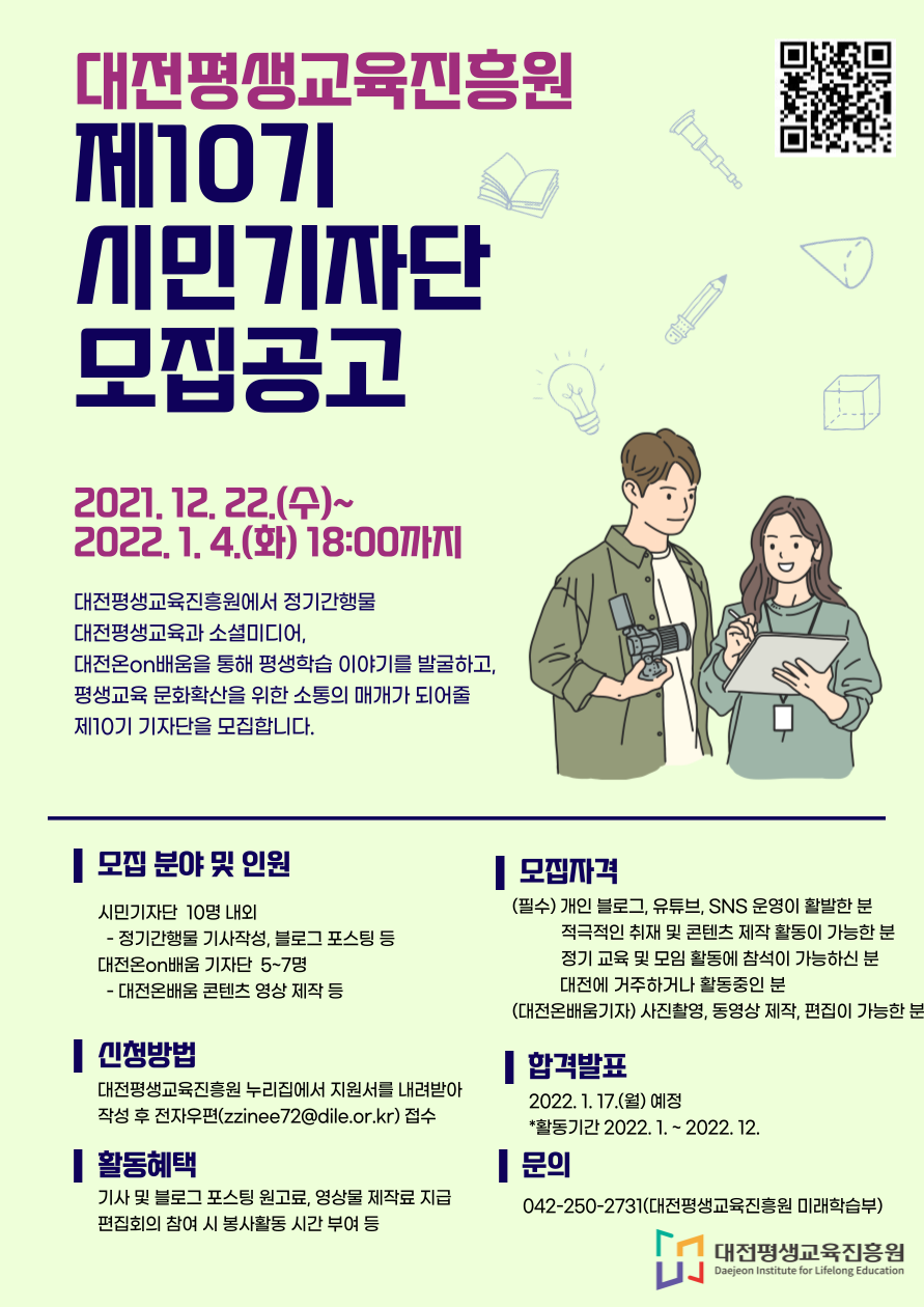 | 제목 | 대전평생교육진흥원 제10기 시민기자단 모집공고 | ||||