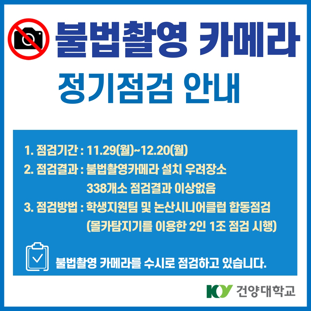 | 제목 | 불법촬영 카메라 정기점검 안내 | ||||