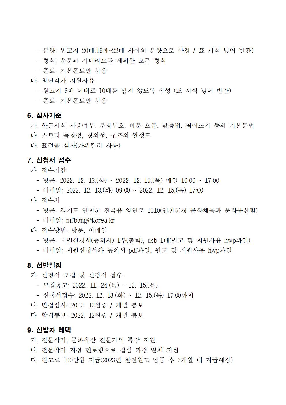 | 제목 | 연천군 스토리텔링 청년작가 모집 안내 | ||||