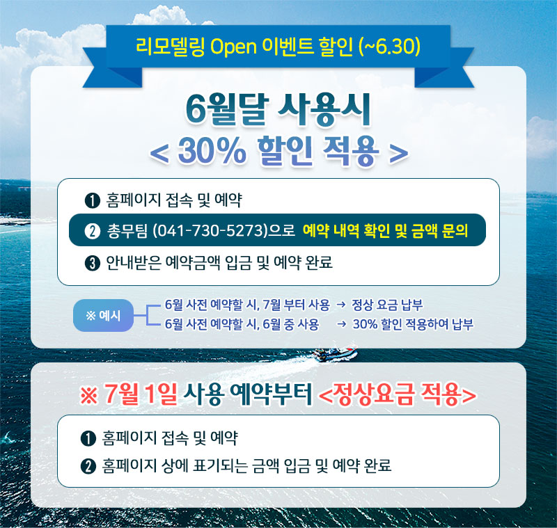 '23.6.12.(월) 부터 예약 및 이용 가능 합니다.