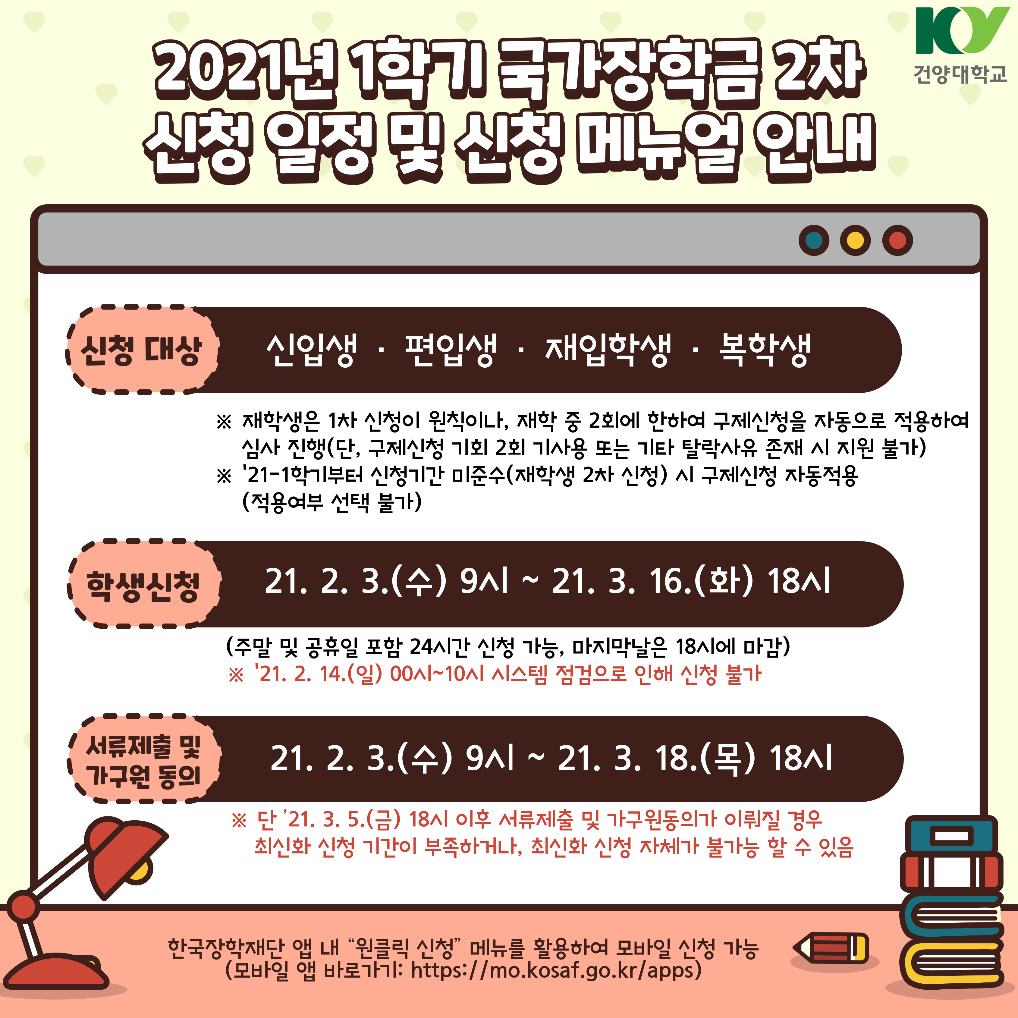 오늘부터 국가장학금 2차 신청기간이에요 :)