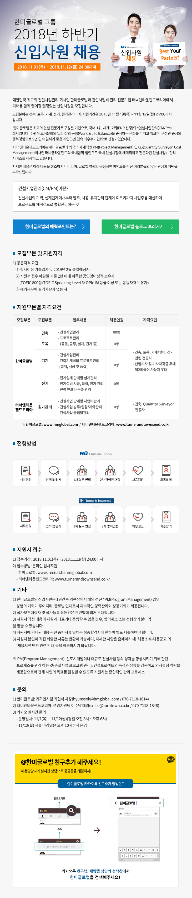 (~11/12)[한미글로벌그룹]2018 하반기 신입사원 채용 안내 글의 상세내용