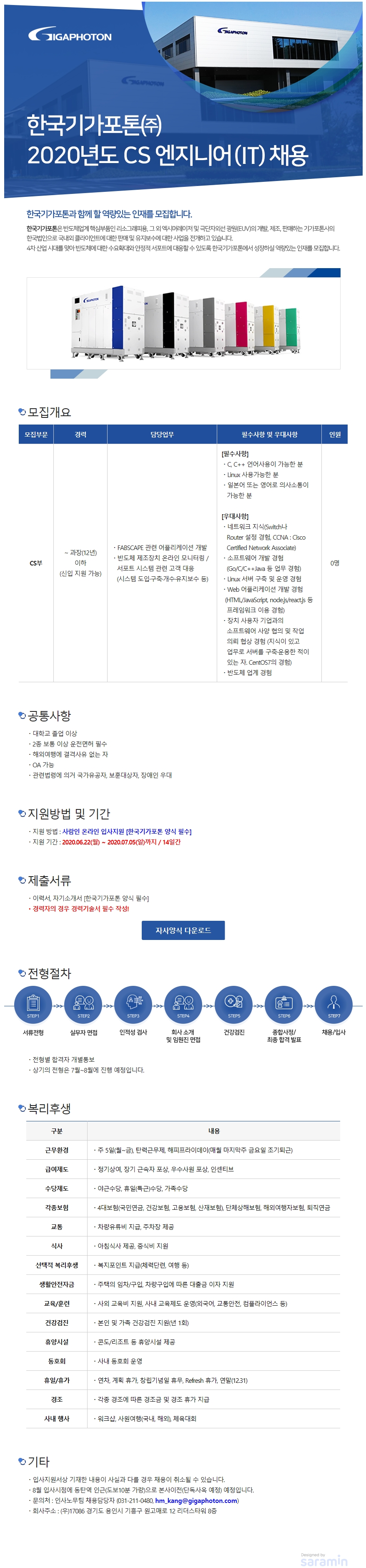 (~7/5)[한국기가포톤]CS엔지니어(IT) 채용 글의 상세내용
