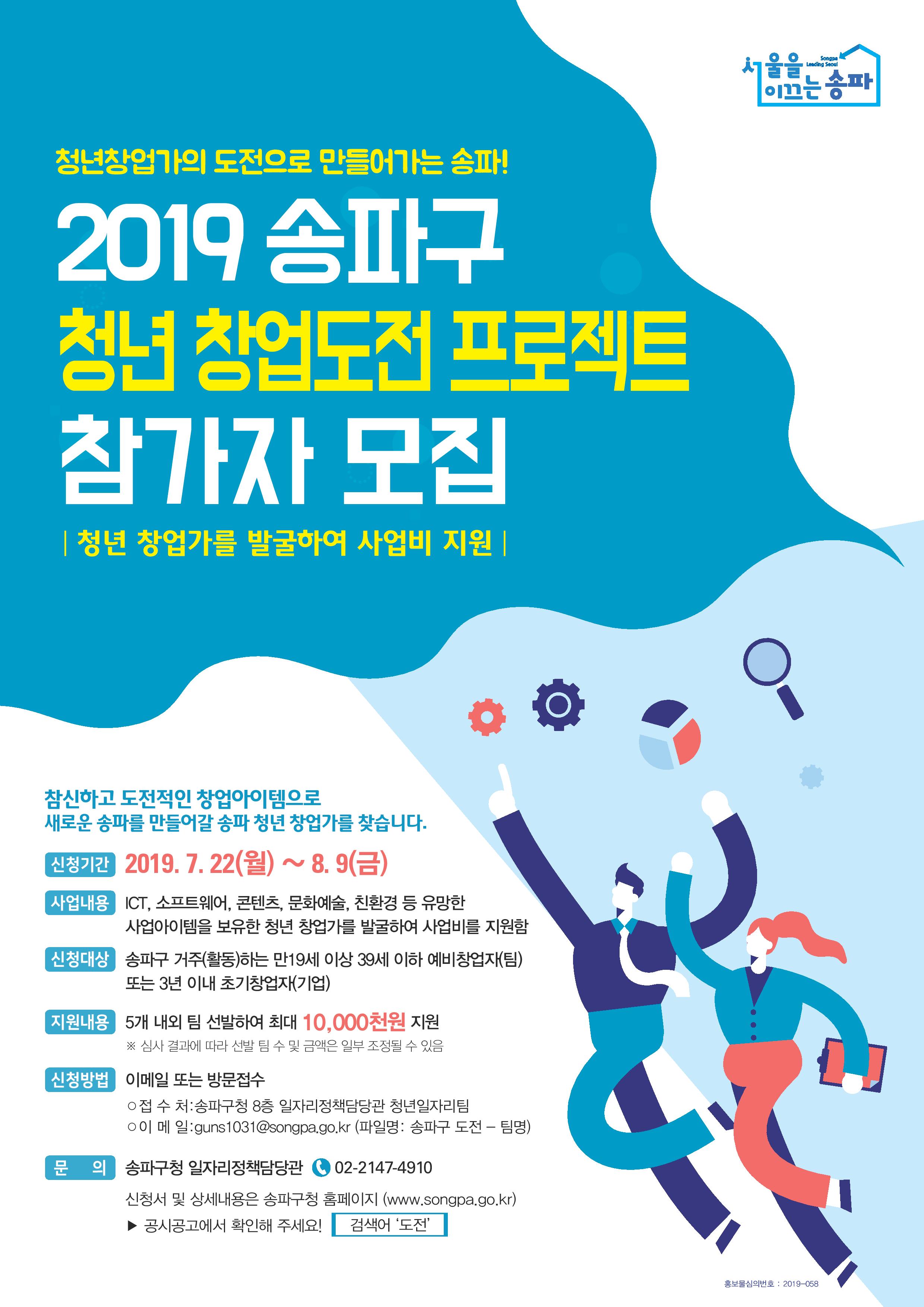 제목 (~8/9)2019 송파구 청년창업도전프로젝트 참가자 모집 안내