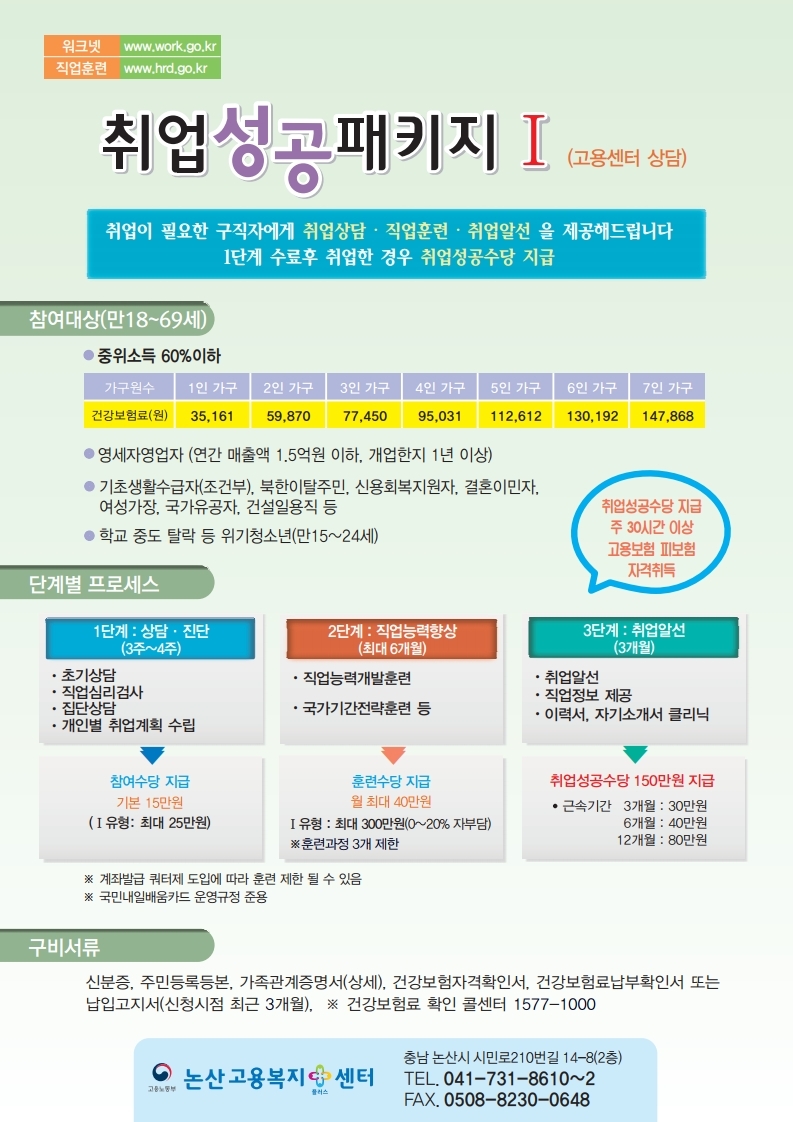 『 취업성공패키지 교육생 모집 』글의 상세내용을 확인하는 표로 제목, 부서명, 등록일, 조회, 첨부, 내용으로 나뉘어 설명합니다.