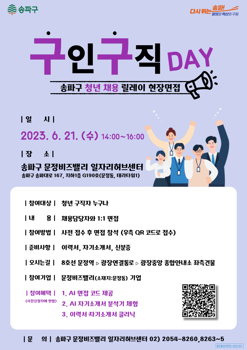 □문 의 처:문정비즈밸리일자리허브센터(02-2054-8265)