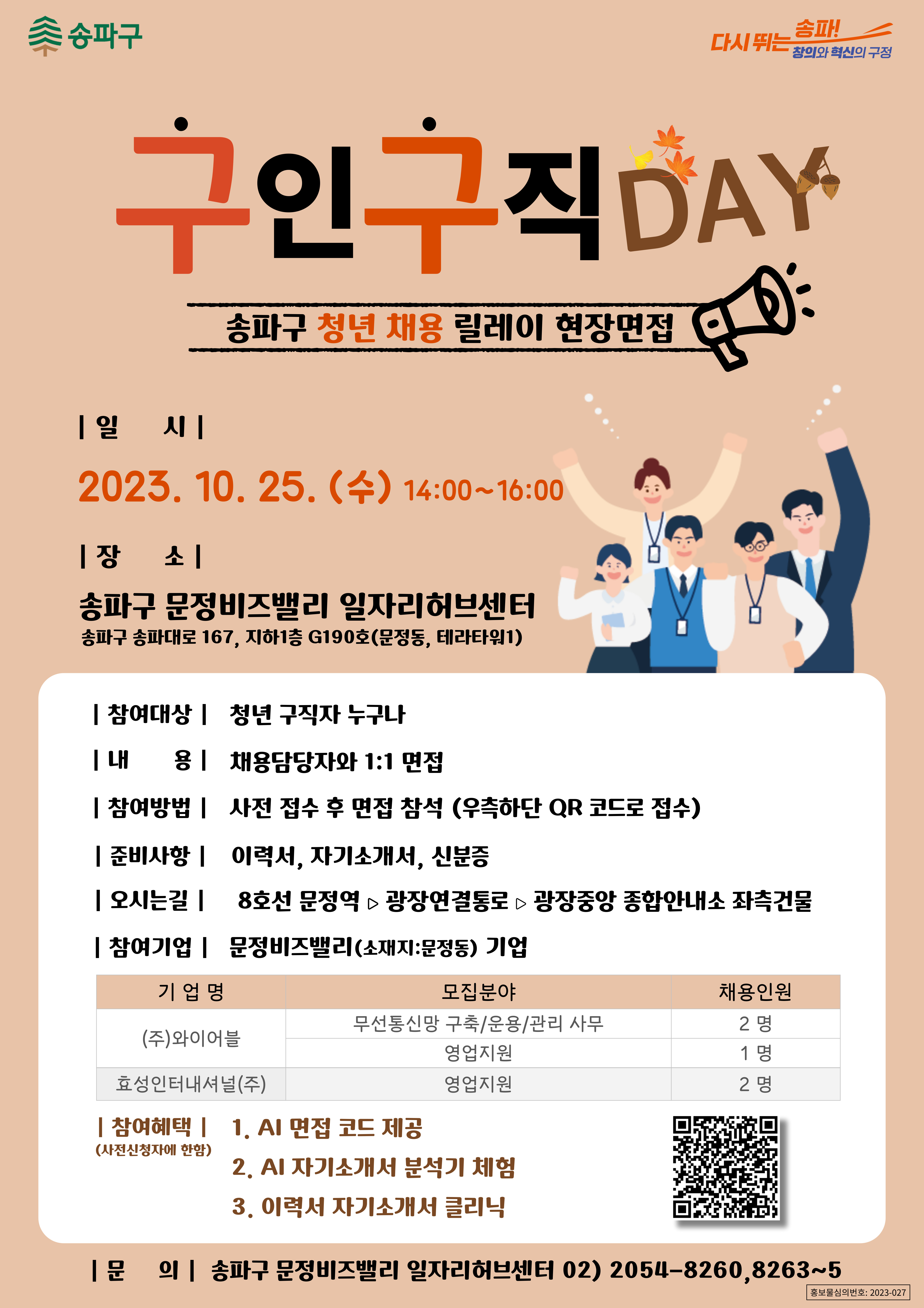 □문 의 처:문정비즈밸리일자리허브센터(02-2054-8265)