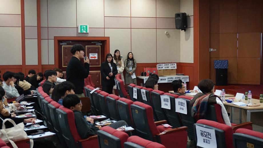 공모전은 ‘호두’, ‘업데이트’, ‘동래정’ 총 3팀이 출전하여 상담의 미래에 대한 자신의 생각을 발표하였습니다. 또한, 학술제가 진행되는 동안 학우들의 꿈이 가득 실린 ‘상상호 : 상담자의 꿈을 상상해 나아가는 호’가 전시되었습니다. 특히 이번 학술제는 평소 학우들의 고민을 모아 교수님의 경험과 지혜를 바탕으로 해결책을 모색해보는 ‘토크콘서트’가 진행되었습니다. 학우들은 ‘인터넷이나 선배들께도 절대 들을 수 없었던 내용이었다’, ‘다음에 또 했으면 좋겠다’, ‘교수님과 단둘이서 편안하게 이야기하는 느낌을 받았다’ 등 열띤 반응을 보였습니다. |