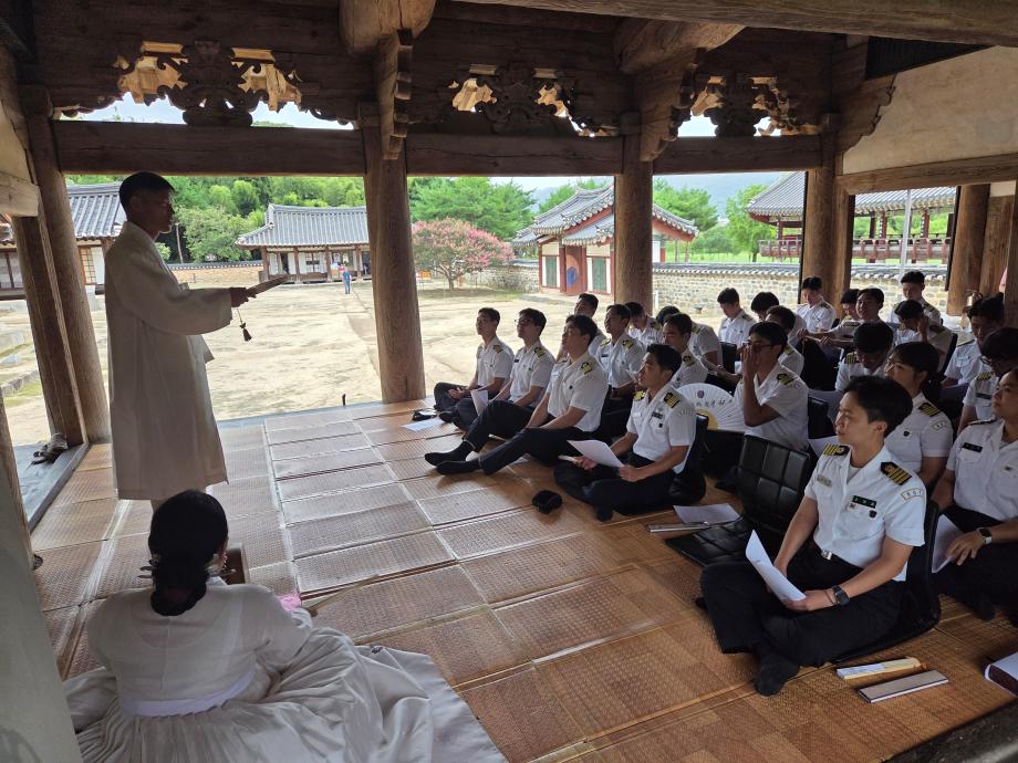 후보생 32명 (4학년)이 논산 소재 돈암서원에서 우리나라 전통 예절 배우기, 아름다운 우리 한글 아름다운 우리 가락 등의 프로그램을 진행하며 예절 교육을 시행받았습니다. |